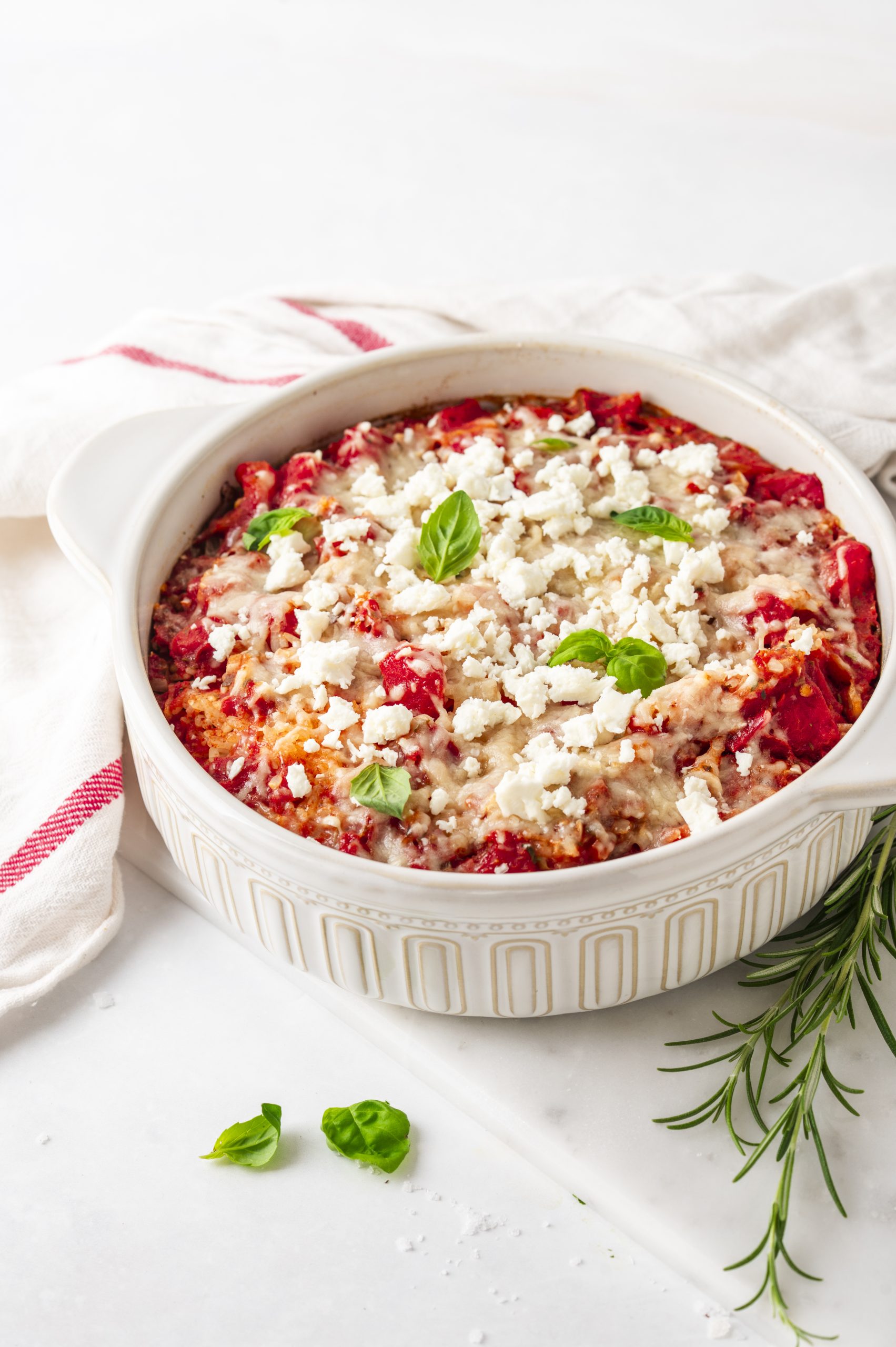 Mediterraner Tomatenreis aus dem Ofen mit Feta & Parmesan